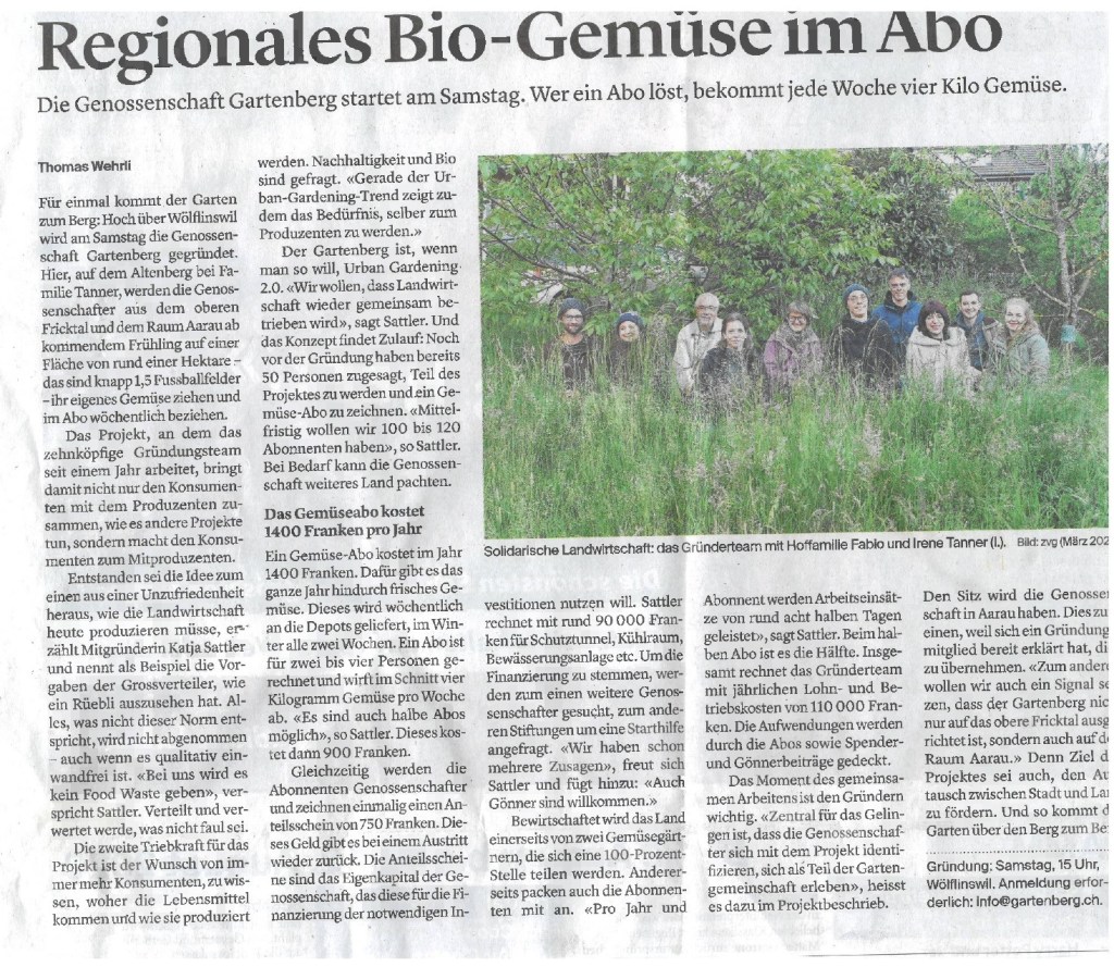 Drei Menschen aus dem Fricktal wagen den Weg nach Zürich. Inspiriert von dortigen bestehenden, funktionierenden Gemüsekooperativen kommen sie heim – die Idee in unserer Region etwas ähnliches auf die Beine zu stellen lässt sie nicht mehr los.