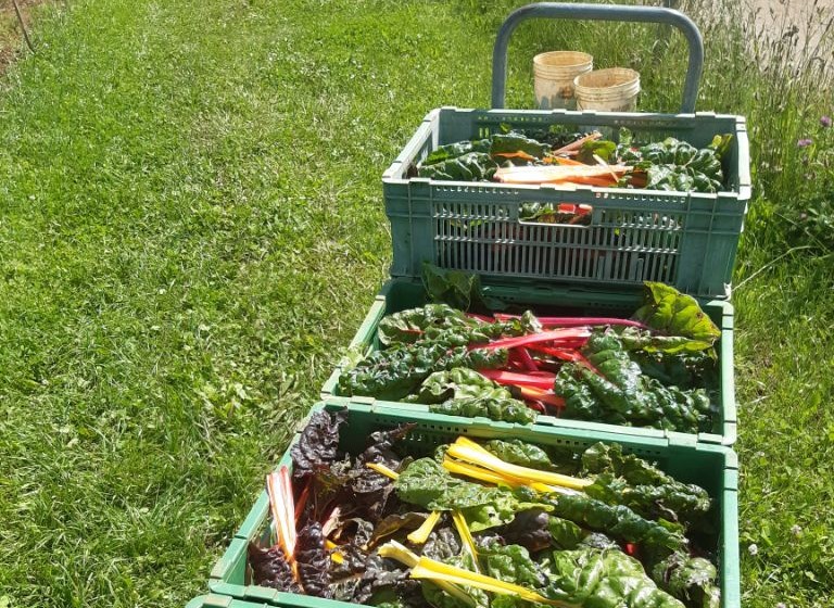 Für die halben Ernteanteile zusätzlich Rhabarber (die ganzen EA haben ihren Teil schon im Mai bekommen)