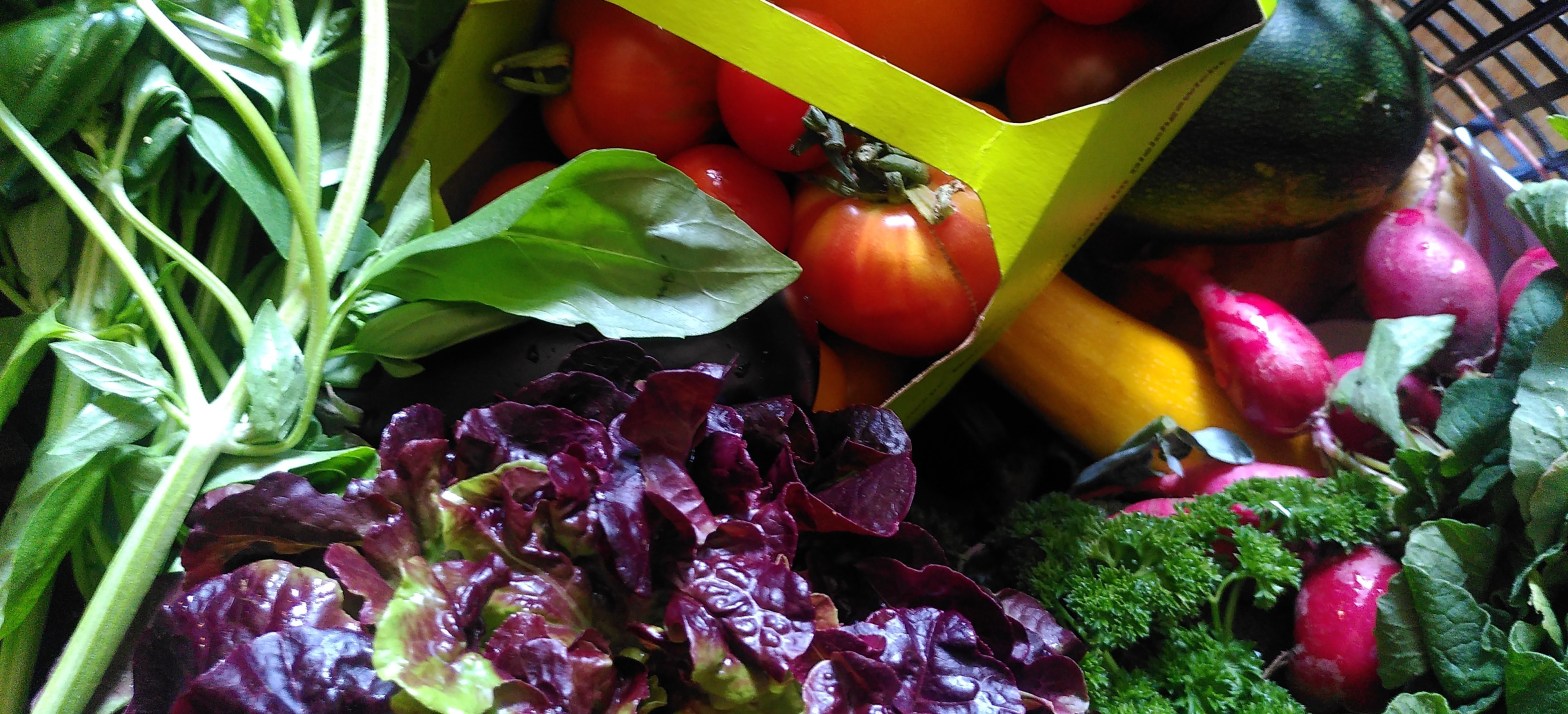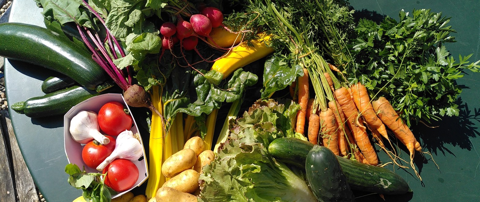 Kartoffeln – Rüebli – Gurken – Zucchetti – Tomaten – Basilikum – Peterli – Krautstiel – Gemüsetwiebeln- für gewisse Depots: Auberginen -Bohnen – Peperoni