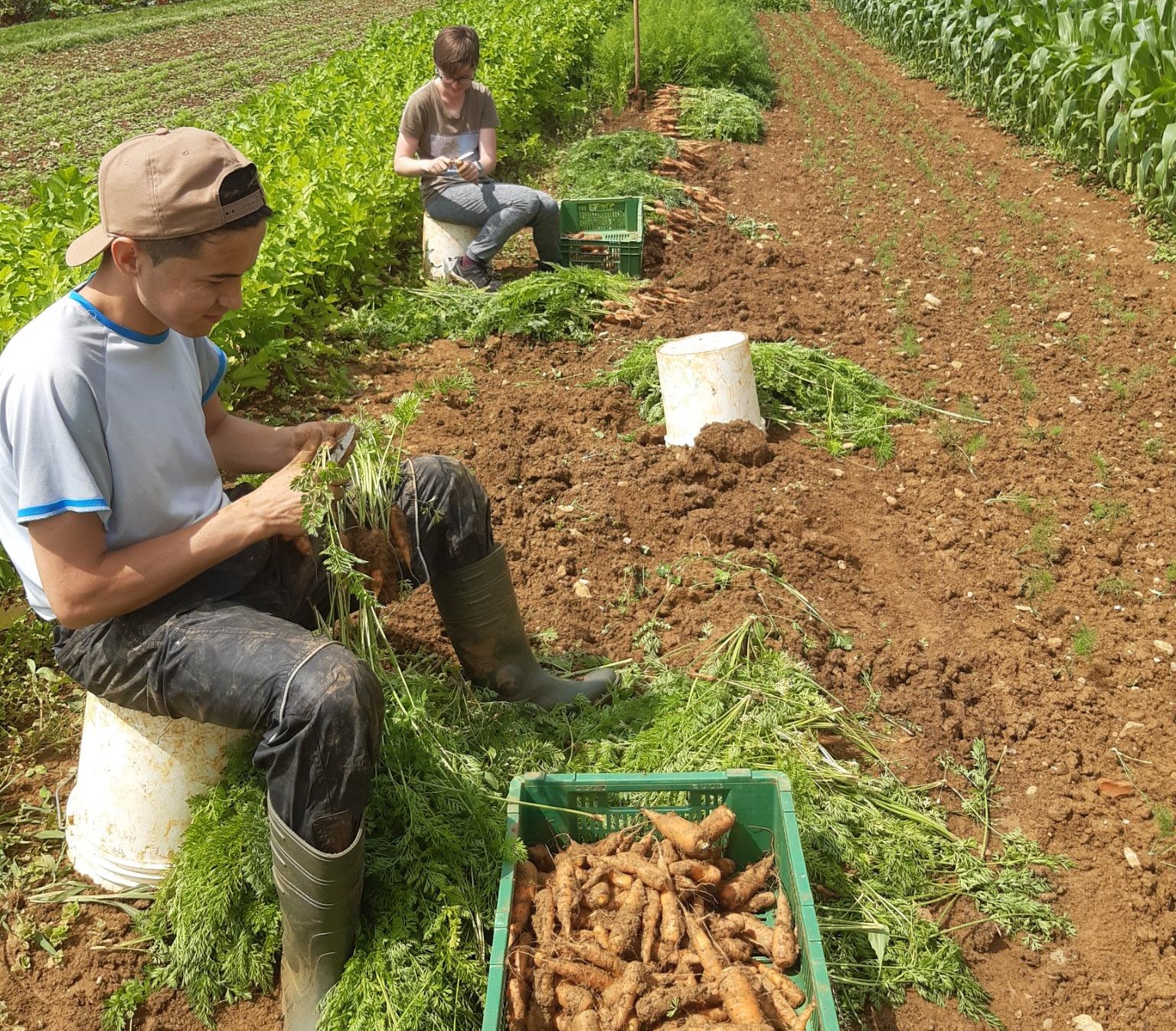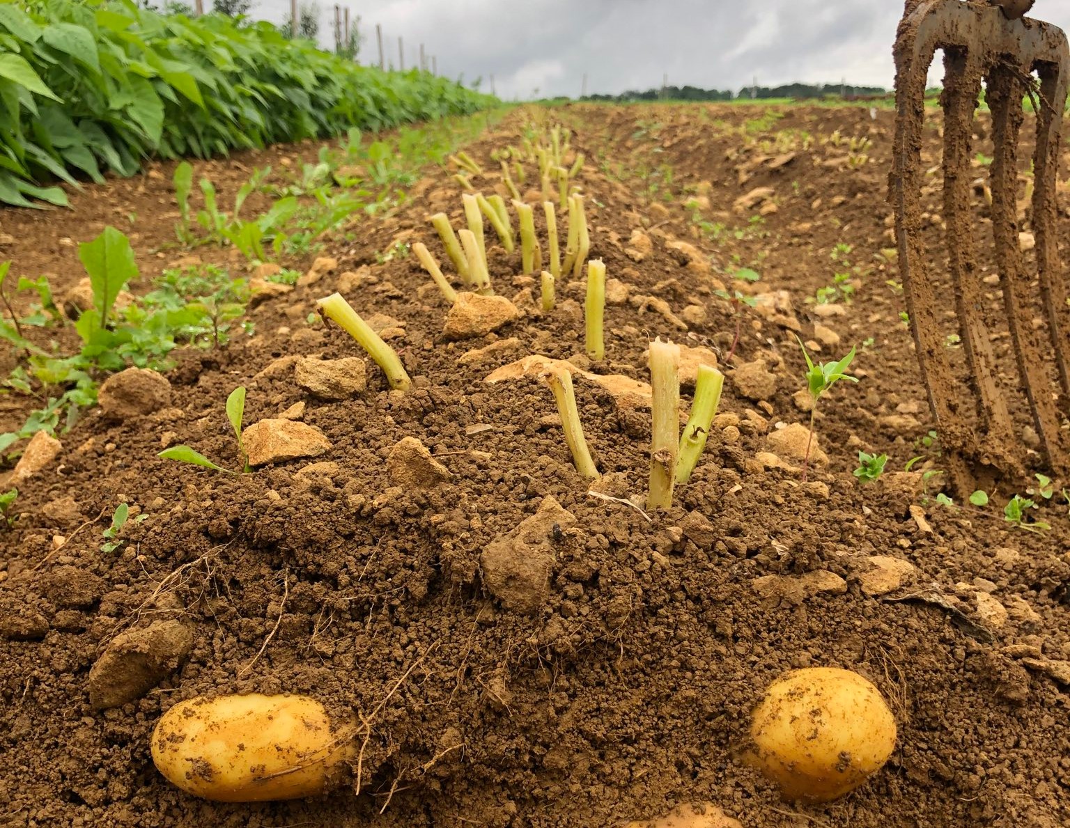 Blumenkohl oder Broccoli, Frühlingszwiebeln, Knoblauch, Salat, Kohlrabi, Krautstiel und FrühlingskartoffelnFür die halben Ernteanteile zusätzlich Rhabarber (die ganzen EA haben ihren Teil schon im Mai bekommen)Für die ganzen Ernteanteile zusätzlich ZucchettiFür gewisse Depots Kefen