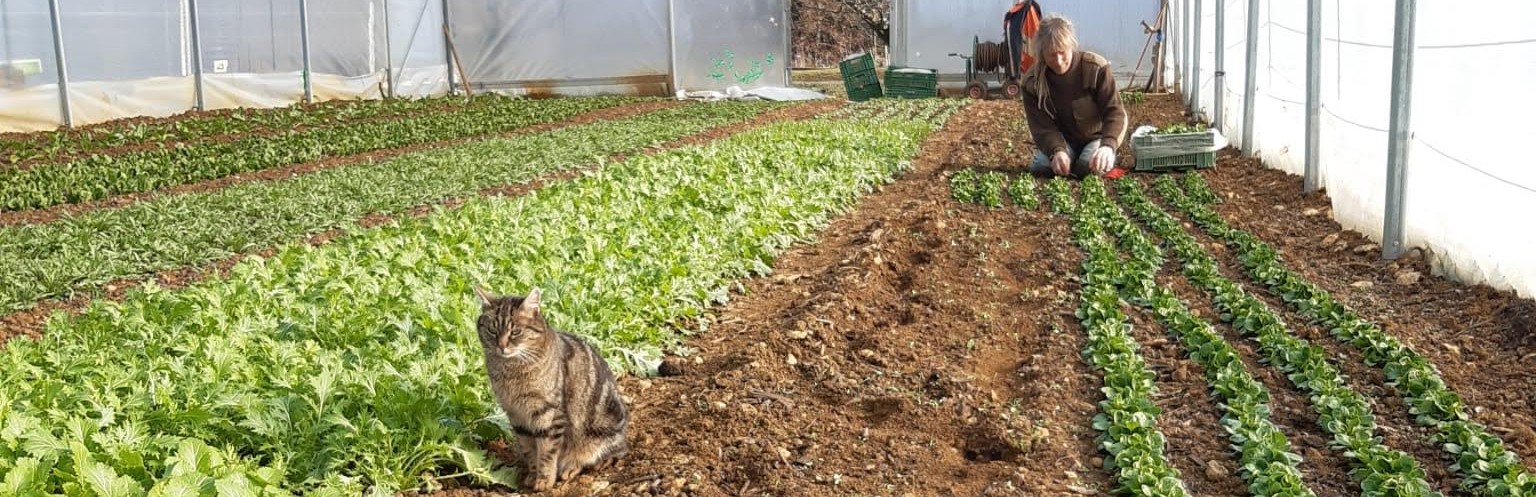9. Februar 2022 Bei frühlingshafter Sonne verpackt das Abpacktrüppli unser Gemüse in die Körbe. Ausser Quentin, denn der nimmt seinen Palmkohl als Mütze mit nach Hause…