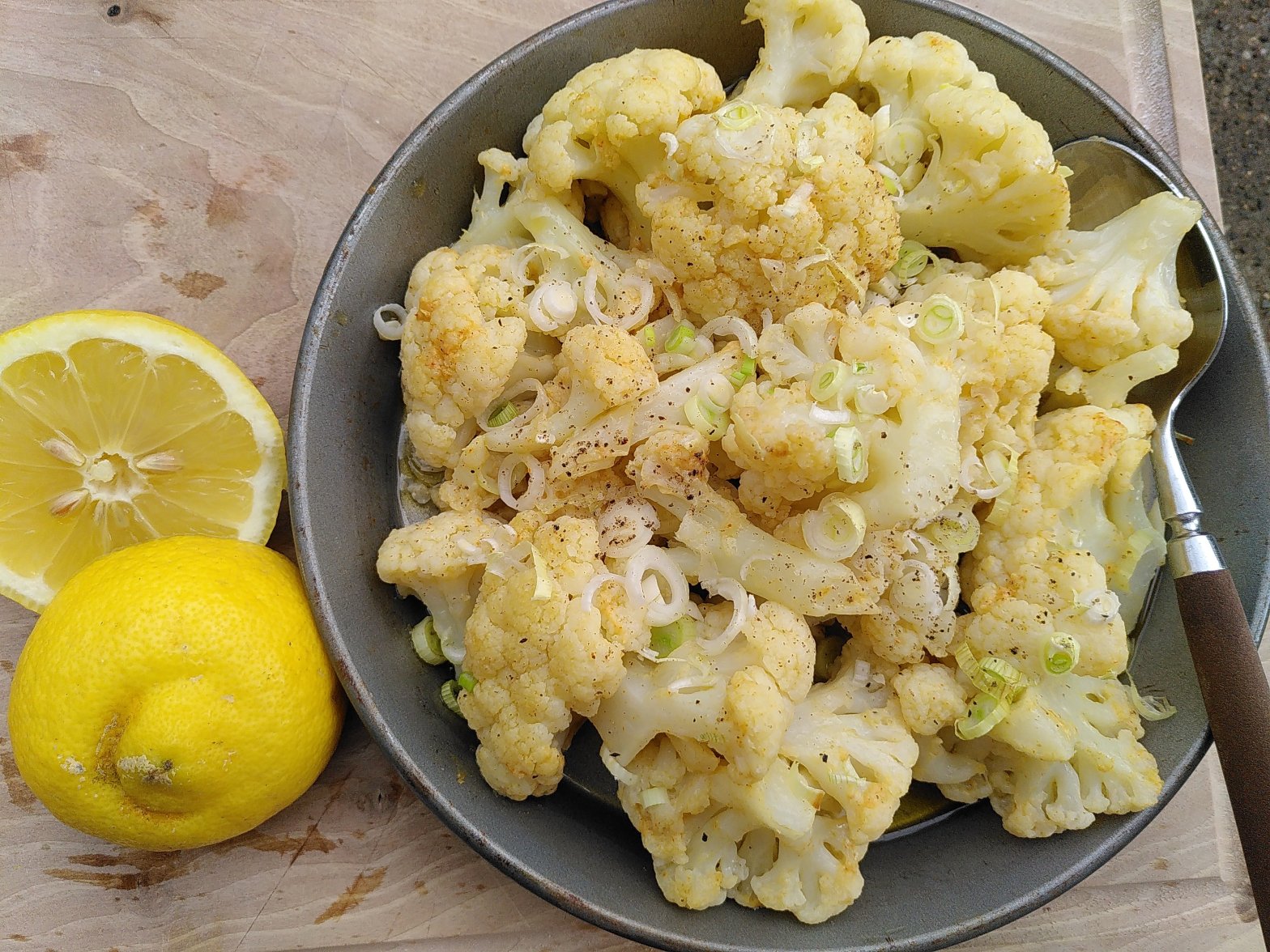 Blumenkohl mit Frühlingszwiebeln und Zitrone