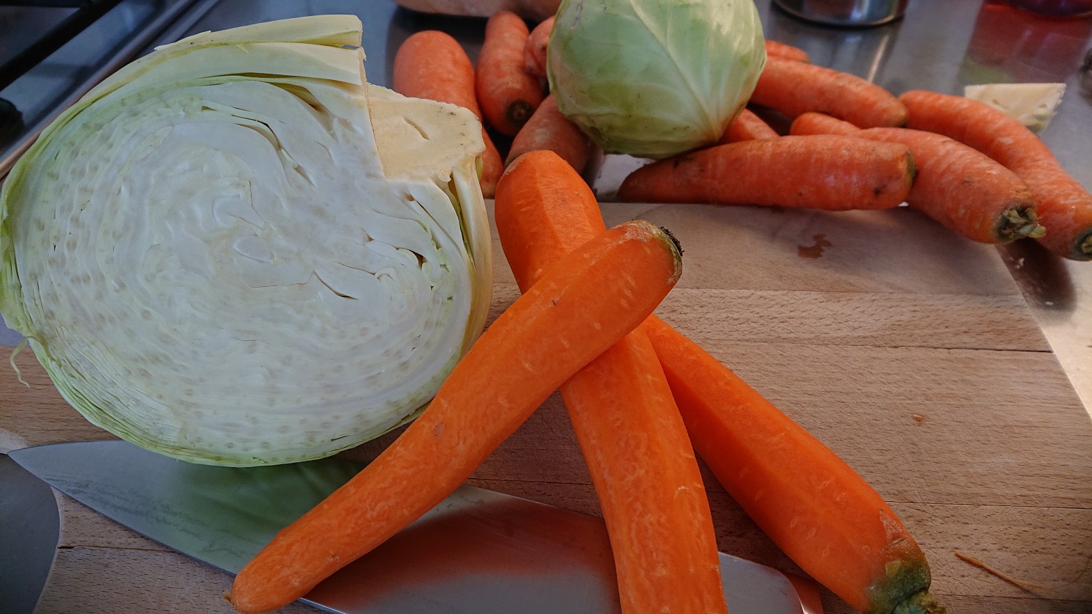 Zutaten 5 grosse Karotten 1 kleiner Weisskohl 1TL Salz 4EL Joghurt oder Sauerrahm 2EL Mayonnaise 1EL Apfelessig 2EL Rapsöl etwas Zitronensaft Zubereitung Für diesen amerikanischen Klassiker Weisskohl und Rüebli möglichst fein hobeln oder auf der groben Raffel reiben. In einer Schüssel mit dem Salz mischen und 30 Minuten stehen lassen. Zutaten für das Dressing mischen„Coleslaw-Salat“ weiterlesen
