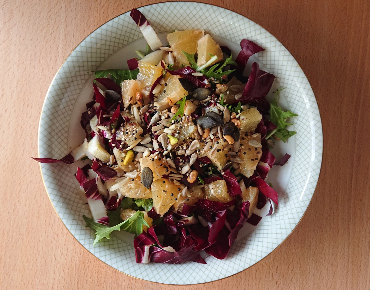 Zutaten 1 KL Honig oder Rohzucker 1 KL Senf 1 EL Zitronensaft 3 EL Orangensaft, frisch gepresst 2 EL Essig 6 EL neutrales Öl Salz und Pfeffer evtl. Peterli, gehackt Zubereitung Alles gut mischen und nach eigenem Geschmack würzen. Der Salat kann mit fein geschnittenem Apfel, Datteln oder Baumnüssen dekoriert werden. Rezept eingereicht von Sylvia„Salatsauce für bittere Salate“ weiterlesen